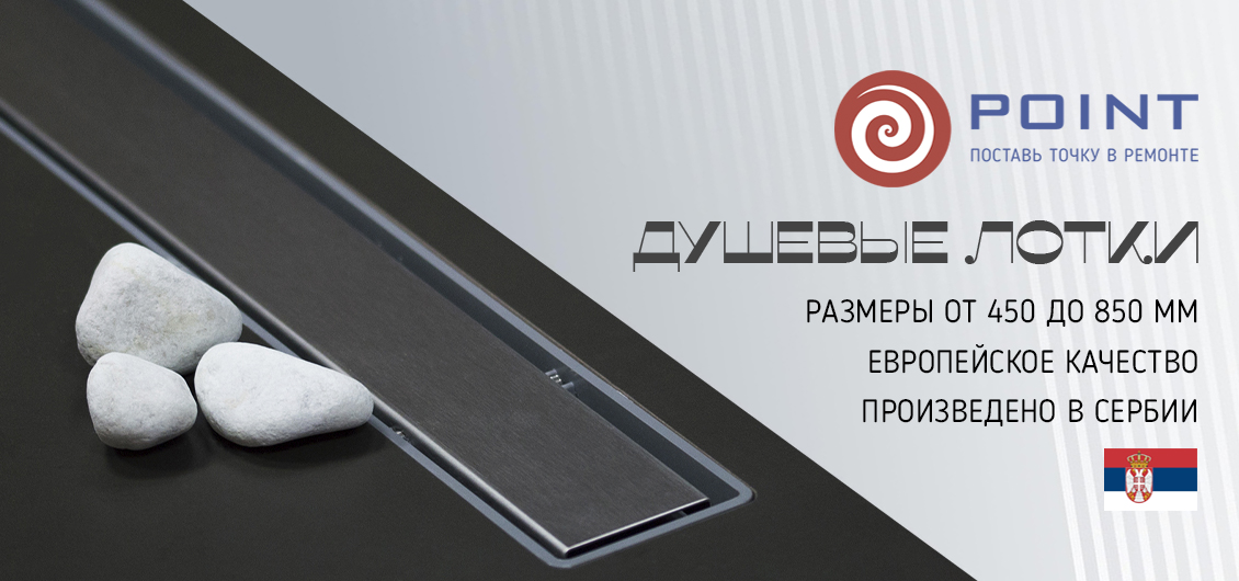 Рады сообщить о старте продаж душевых лотков европейского производства от бренда POINT. Продукция производится в Сербии на заводе знаменитого бренда Pestan, который славится своей историей и успешным многолетним опытом в области производства сантехники.